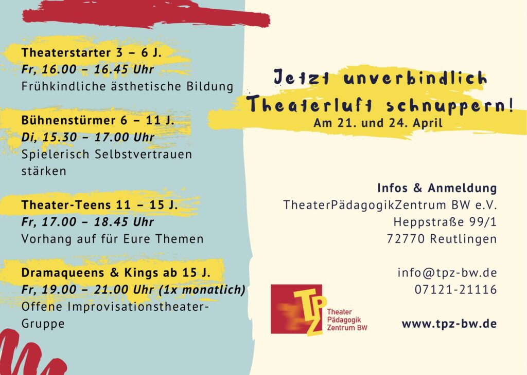 Ort: TheaterPädagogikZentrum BW, Heppstraße 99, 72770 Reutlingen